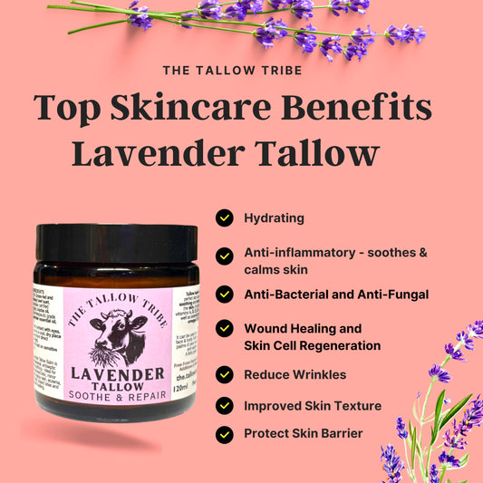 Suggested Product: Try our Lavender Tallow Balm or Frankincense Tallow Balm for quick healing of cuts and minor wounds. Both balms utilise natural antibacterial properties to protect the skin and speed up the recovery process.